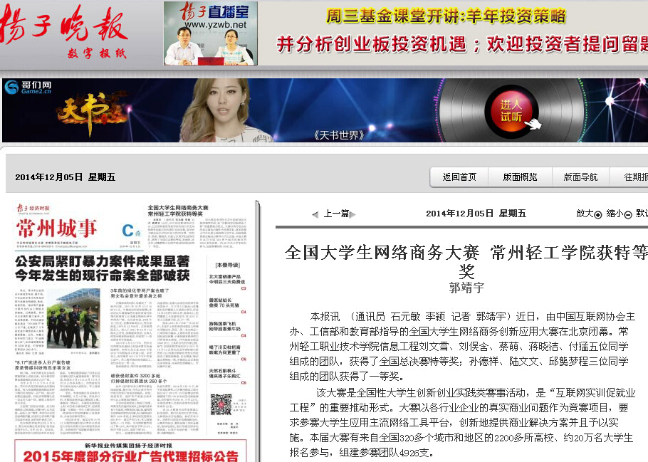扬子晚报-全国大学生网络商务大赛 常州轻工学院获特等奖