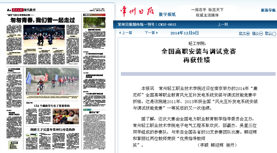 常州日报-轻工学院:全国高职安装与调试竞赛再获佳绩