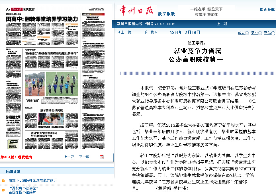 常州日报-轻工学院:就业竞争力省属公办高职院校第一