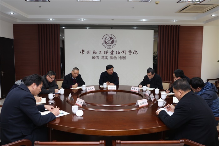 陆金林一行以学院2017年工作成效及2018年工作安排、常州“5.18”展洽会活动构想、人工智能实训基地建设项目的推进情况为重点,考察了学院的办学情况。