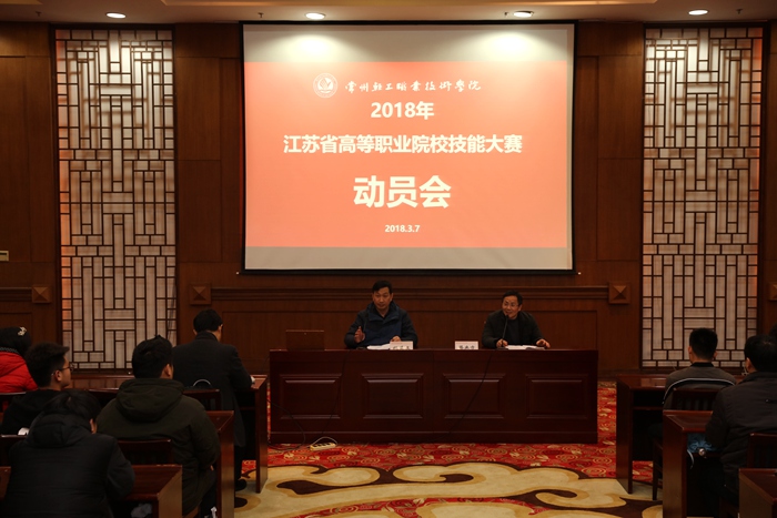 2018年江苏省高等职业院校技能大赛开赛在即,为进一步提振士气、提升信心,充分展示我院学子在技能大赛舞台上的精湛技艺,3月7日,学院召开赛前动员会。副院长姚庆文、全体参赛项目领队、指导教师和参赛选手参加了会议。会议由教务处副处长滕业方主持。