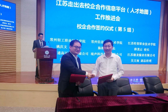 推进会上,学院副院长姚庆文代表学院与江苏亨通高压海缆有限公司刘熙经理签署战略合作框架协议,双方将在留学生招生、留学生订单式人才培养、留学生实习与就业、企业在岗人员培训、教师企业锻炼、学术交流、行业信息交流等方面开展深度合作。