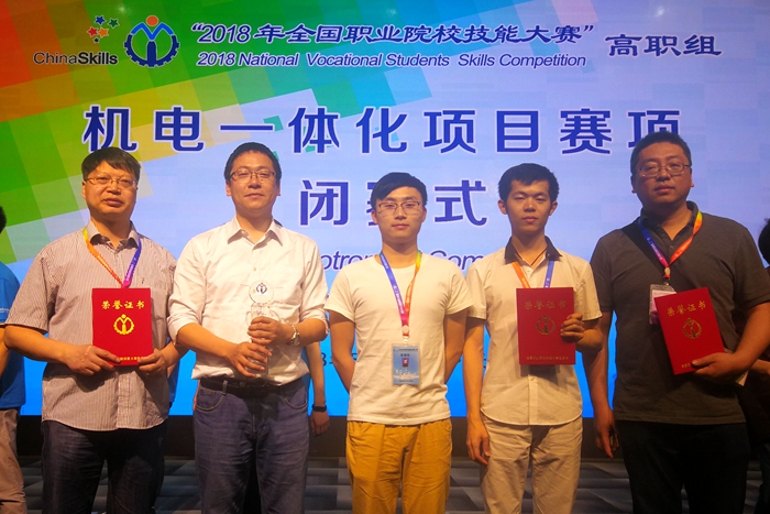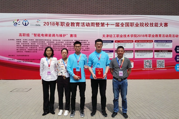 5月6-8日,2018年全国职业院校技能大赛高职组“智能电梯装调与维护”赛项、“机电一体化项目”赛项在天津举行,来自全国近30个省区的几十支代表队展开激烈角逐。我院电气工程与技术学院张建根、余芬老师指导的刘伟、朱磊同学组成的参赛队及顾六平、沈治老师指导的江海天、段德科同学组成的参赛队在比赛中沉着应战,充分发挥训练水平,以优异成绩双双获得大赛一等奖!