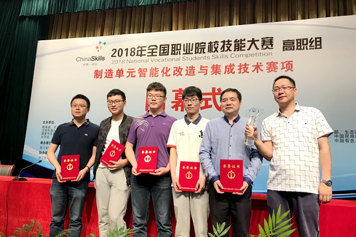 6月1-3日,2018年全国职业院校技能大赛高职组“制造单元智能化改造与集成技术”赛项在杭州举行,我院代表队以第1名的优异成绩获得该赛项一等奖。