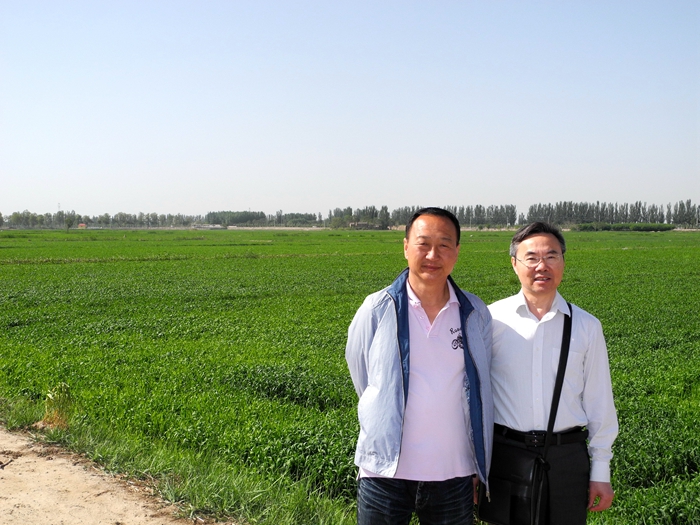 “那天我去银川找他,从河东机场直接打的27公里到达基地,刚好碰上袁东彪给农民分钱——我的天哪,他们用蛇皮袋装了130万,坐在田埂上,当场丈量土地,按每亩一年流转费725元当场分钱。我说你就不能通过银行打款?东彪说,当场分钱,农民心里踏实。”