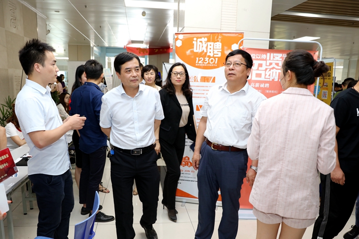 为更好地落实学院2019届毕业生毕业实践工作,为毕业生提供更高质量的就业岗位,学院联合各地区人力资源和社会保障局以及我院校友会于6月6日下午成功举办了2019届毕业生毕业实践供需洽谈会。学院党委书记缪昌武、院长杨劲松、党委副书记毛伯民、副院长蒋新萍等院领导来到招聘现场与用人单位交流并与应聘学生亲切交谈。