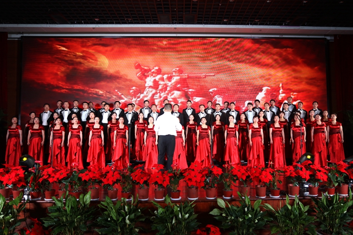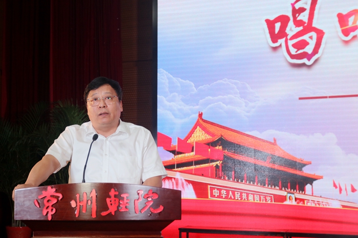 大合唱在院党委书记缪昌武的致辞中拉开序幕。缪昌武希望大家以饱满的热情,嘹亮的歌声,唱响新时代的主旋律;希望大家用歌声来表达我们的理想信念,展示新时代轻院人良好的精神风貌,激发全院师生员工热爱祖国、热爱共产主义的高尚情怀。用歌声抒发我们轻院人敢于担当,勇于作为,追求卓越,再创辉煌的豪情壮志。