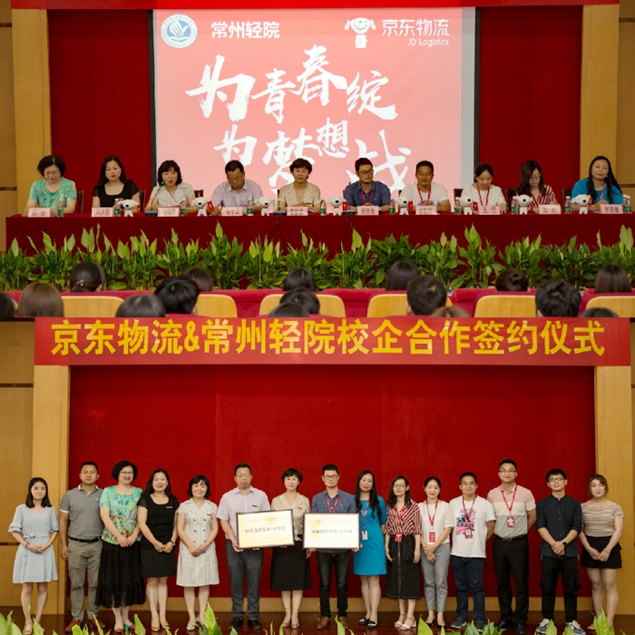 为主动适应区域经济对商贸人才的需求,创新校企协同育人体制机制,推动商贸物流专业群建设,进一步优化“校企融合、课岗对接、仿真+全真”的人才培养模式,6月15日下午,常州轻工职业技术学院与京东物流华东区域分公司校企合作签约仪式在我院举行。学院副院长蒋新萍、京东物流华东仓储总监何伟彬出席仪式并讲话。仪式由经贸管理学院院长杨海清主持。参加仪式的还有校企双方领导、企业嘉宾、专业教师、2016级、2017级物流管理专业学生。