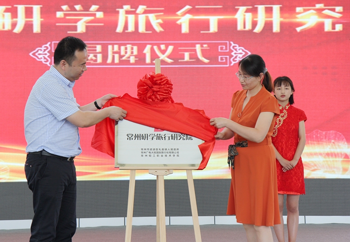 朱慧峰与我院校企合作处副处长禇守云互签“区域联盟合作协议”;旅游与烹饪学院与常州广电大陆国际旅行社有限公司签订“合作办学协议”;现场进行“常州研学旅行研究院”“常州轻工职业技术学院广电大陆国旅企业学院”揭牌仪式。同时,蒋新萍为陆俊颁发旅游与烹饪学院产业教授证书,陆传大为尹奎颁发常州广电大陆国旅有限公司副总经理证书。