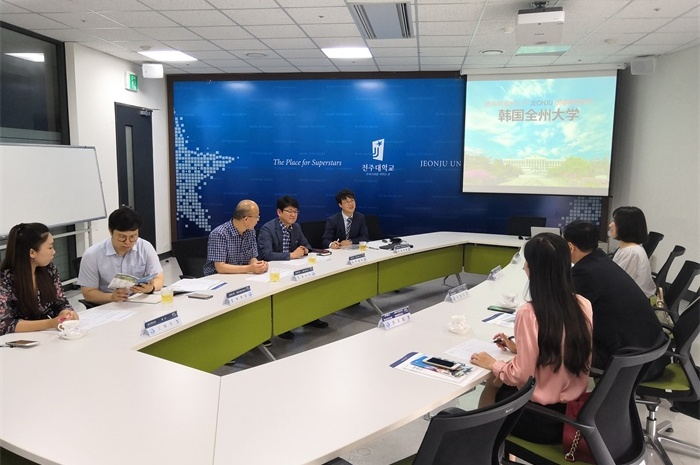 考察团与全州大学国际交流院高仙祐院长、李赫周副院长等就“2+1+1”合作项目中合作模式、组班人数、韩国语学习方案等方面进行了广泛交流。双方希望后期通过互派学生、相关专业教授互访、教师攻读博士、共建跨境实习就业基地等提高合作层次,丰富合作内容。