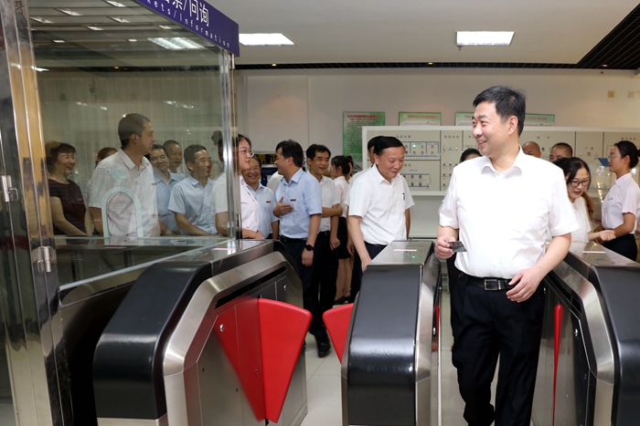 汪泉书记现场体验地铁购票和刷卡进站等乘车环节