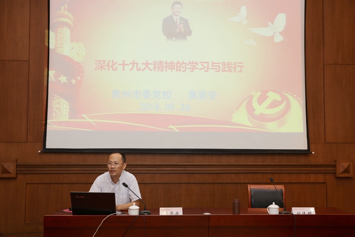 开班仪式结束后,市委党校机关党委专职副书记袁崇安为培训班学员作了题为“深化十九大精神的学习与践行”的学习辅导报告。袁崇安运用翔实的数据,从新时代、新目标、新思想、新方略四个方面,为学员们学深悟透习近平新时代中国特色社会主义思想和党的十九大精神进行了详细阐述。