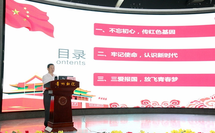 讲座内容包含传红色基因;认识新时代、三爱报国;放飞青春梦三个主题。万军从党的初心和使命讲起,为大家介绍了 “红船精神”“长征精神”“延安精神”“西柏坡精神”;从“新时代”的丰富内涵和重大意义讲述了习近平新时代中国特色社会主义思想理论框架;从热爱祖国、热爱劳动、热爱学习的“三爱”谈起,嘱咐青年学生要牢记习总书记“有理想、有本领、有担当”的殷殷嘱托,热爱祖国,热爱劳动、热爱学习,听党话、跟党走,传承红色基因,争做合格的新时代中国特色社会主义事业的接班人,奋力放飞无愧于时代的青春梦,让中华民族伟大复兴在奋斗中梦想成真。