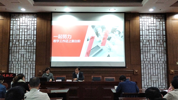 为了贯彻陈宝生部长《吹响“课堂革命”号角》把质量作为教育的生命线,坚持回归常识、回归本分、回归初心、回归梦想的讲话精神,落实八大工程之高水平专业建设方案要求,11月6日,由教务处组织的教研室主任培训会成功举行,全院新聘任的教研室主任40余人参加了培训。院长杨劲松、副院长姚庆文出席培训会,会议由教务处处长潘安霞主持。