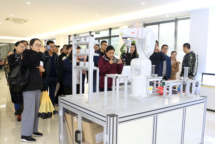 对接会前,与会企业代表参观了我院与高新区及企业三方共建的智能制造跨企业培训中心,江苏宇邦工业自动化系统有限公司总经理李小龙和机械工程学院院长徐伟分别向企业代表介绍了培训中心的运行情况。