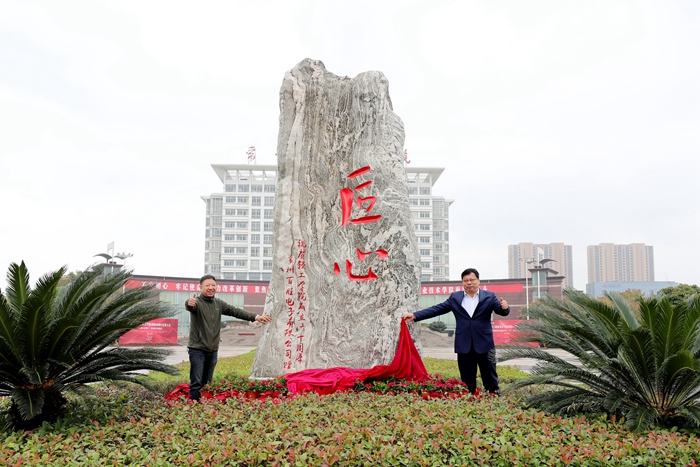 典礼上,学院党委书记缪昌武和吴春荣一起为匠心石揭幕,院长杨劲松和吴春荣共同为思源亭剪彩。匠心石和思源亭的落成典礼是60周年校庆校园文化系列活动之一,是学校建校六十周年的文化标志性项目,为学校文化建设赋予了新内涵,为校园增加了一处师生读书休闲的交流场所。