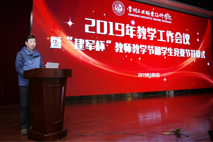 姚庆文作学校教学工作会议报告,他从教育教学改革取得新成效、专业建设得到新提升、学生大赛跨上新平台、双创工作取得新突破、国际合作交流上了新台阶5个方面回顾了学校一年来取得的教学成绩,并阐述了当前教学工作面临的形势及存在的问题。围绕下一阶段教学主要工作 “一个推进、二个加强、三个优化”的思路, 要求做好以下6个方面的工作:即推进三全育人,落实立德树人根本任务;加强产教融合,改革人才培养模式;加强师资队伍建设,提升教师教学能力;优化课程体系,完善人才培养方案;优化专业结构,提升专业建设水平;优化课堂教学,积极打造“金课”课堂。