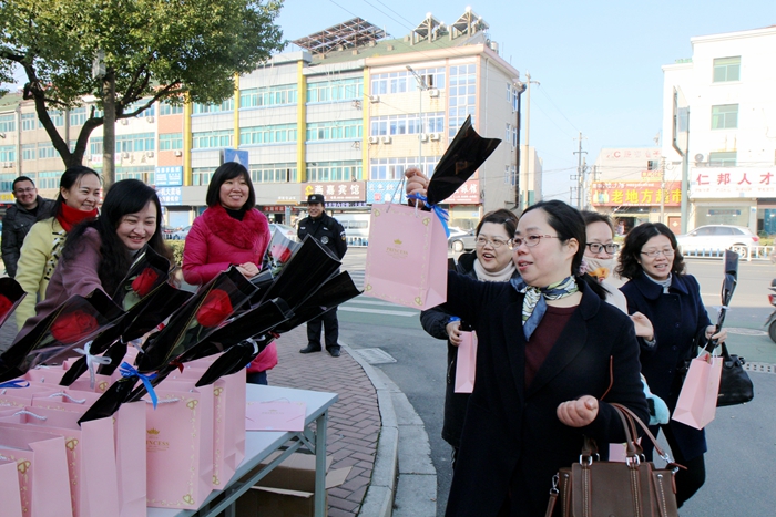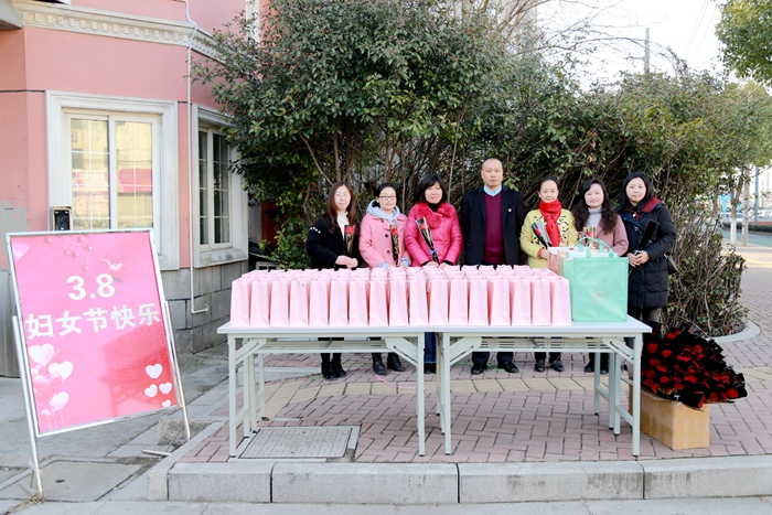 为庆祝“三八”国际劳动妇女节,3月8日早上,党委书记缪昌武,党委副书记、工会主席毛伯民,副主席陈文蕾及工会女工委员们在学校北大门、西大门,为女教工送上玫瑰、甜点和节日的祝福。