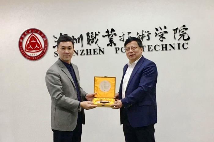 深圳职院党委书记陈秋明向缪昌武赠送纪念品