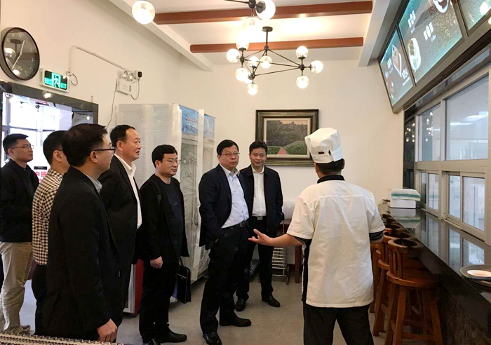 在广东轻工职业技术学院,出差在外的党委书记杜安国教授通过电话对缪昌武一行表示热烈欢迎,校长卢坤建教授带领相关对口部门领导抽出周末时间予以接待。卢坤建首先介绍了广东轻工职业技术学院的成长历程和发展成就,并重点交流了学校“大教学、大管理、大保障、强督察”的“三大一强”以及全校跨专业教学资源、管理资源、保障资源全方位融合的“三融合”等院校治理理念和相关举措。双方院校就学校发展中的一些共性问题进行了坦诚且深入的交流。会后,卢坤建还陪同缪昌武一行参观了广东轻院的创新创业导师团队工作室和学生食堂,介绍了名师团队创新创业工作、学生食堂智慧化管理以及垃圾分类处理等创新思路和管理经验。