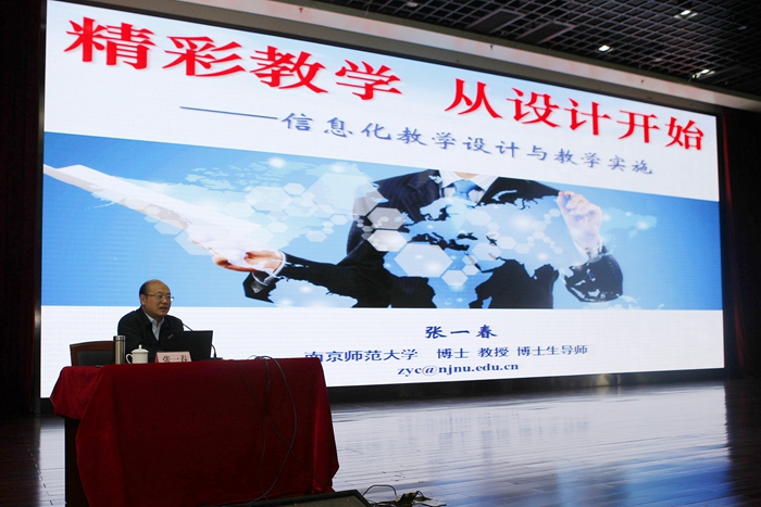 4月4日上午,我校全体教师齐聚一堂,共同聆听南京师范大学继续教育学院院长、博士生导师张一春教授题为“精彩教学,从设计开始——信息化教学设计与教学实施”的讲座。学校副校长蒋新萍出席并主持活动。