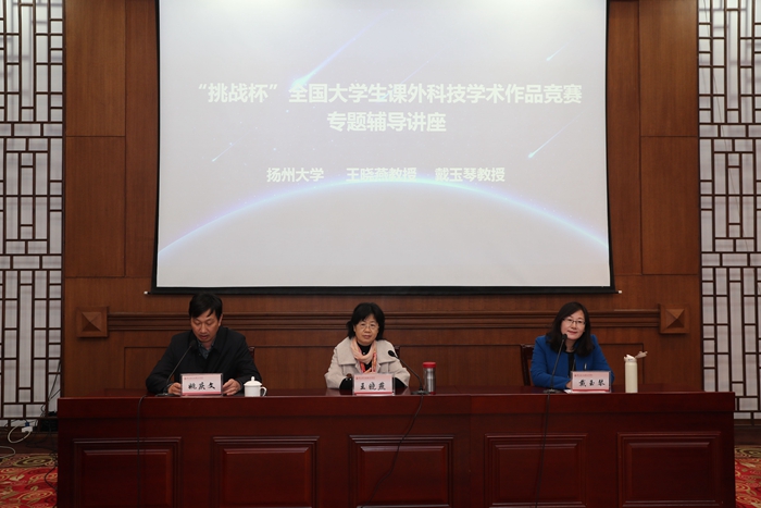 4月11日下午,扬州大学马克思主义学院王晓燕教授、戴玉琴教授受邀对我校师生进行了“挑战杯”全国大学生课外科技学术作品竞赛专题辅导讲座。