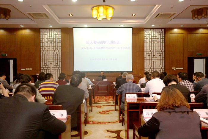 4月18日下午,学校召开党委理论学习中心组(扩大)专题学习会,会议邀请中共常州市委党校康永超教授作了题为《伟大复兴的行动指南——深入学习习近平新时代中国特色社会主义思想》的报告。全体校领导和中层干部参加了本次学习会,讲座由校党委副书记毛伯民主持。