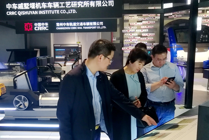 座谈会后,在陈益伟的陪同下,蒋新萍一行参观了常州轨道交通产业展示馆。