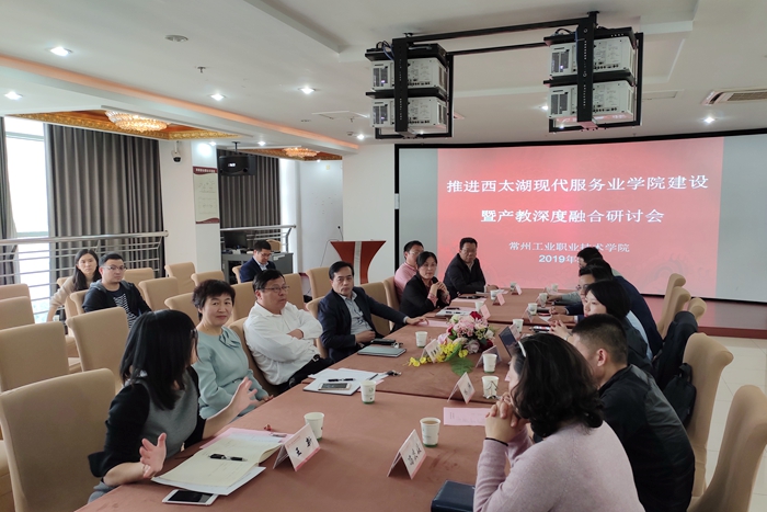 5月9日下午,学校召开推进西太湖现代服务业学院建设暨产教深度融合研讨会。会议邀请西太湖互联网管理办公室主任刘立鸿作专题报告。学校党委书记缪昌武出席会议。校长杨劲松致欢迎辞。副校长蒋新萍主持会议。