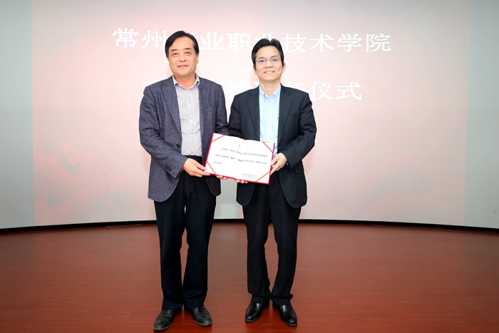 杨劲松对刘立鸿的到来表示热烈欢迎,并为其颁发学校产业教授聘书,希望刘立鸿为学校的发展和西太湖现代服务业学院的建设多提宝贵建议。