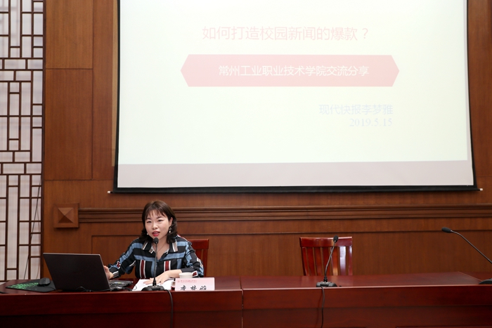会议邀请了《现代快报》常州站站长李梦雅做题为《如何打造校园新闻的爆款》的新闻写作培训讲座,她结合自己在新闻战线工作多年的宝贵经验,从“什么是新闻、新闻的构成要素、如何发现新闻线索、新闻策划、范例分析”五个方面系统阐述了新闻写作的要领及注意事项,并联系学校工作实际,为大家分享了部分爆款校园新闻案例,用生动的实例为大家呈现了一场精彩的新闻写作知识盛宴。