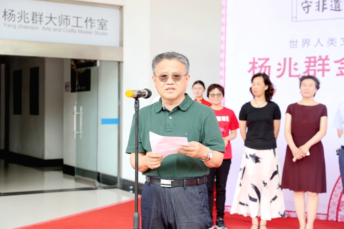 金坛刻纸传承人、江苏省工艺美术大师杨兆群讲话