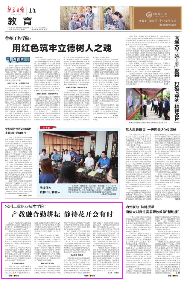 《新华日报》——《常州工业职业技术学院:产教融合勤耕耘 静待花开会有时》