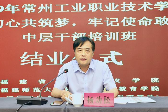 在7月12日举办的结班仪式上,校长杨劲松作了总结讲话。杨劲松代表学校对福建省社会主义学院、福建师范大学对本次培训的关心支持和热情服务表示诚挚感谢,对本次专题培训班取得的成效给予成分肯定。希望学员们努力把理论上的提高,思想上的提升,精神上的提振,转化为指导实践、促进发展的实际本领,紧扣学校中心工作,扛起使命担当,对党委的决策部署真心承担、用心设计、潜心落实, 在推动学校高质量发展的道路上再立新功。纪委副书记叶志平传达了中央纪委办公厅《关于贯彻习近平总书记重要批示精神深入落实中央八项规定精神的工作意见》。四名学员作了交流发言,畅谈收获体会。