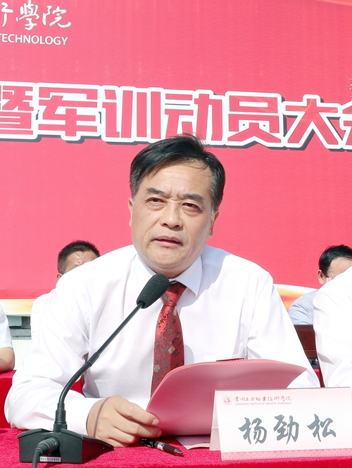 杨劲松发表了热情洋溢的致辞,向全体新同学表示热烈的欢迎,向承担本次军训任务的南京信息职业技术学院士官学院全体官兵表示诚挚的感谢。他希望同学们做到三个“自信”:一是树立“人生自信”,在漫长的人生长跑中,弯道加速、跨越赶超;二是重拾“学习自信”,在学习中发现自我、修炼自我,相信自己,天生我材必有用;三是练就“本领自信”,以杰出校友邓建军为榜样,起步着力,调整身姿、自信奔跑,去创造属于自己的"王者荣耀"。