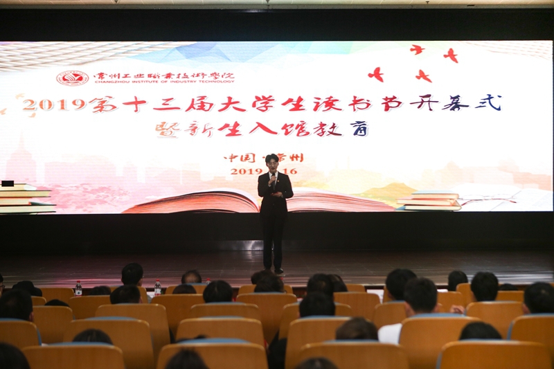 9月16日下午,我校举行以“我和我的祖国”为主题的第十三届大学生读书节开幕式暨新生入馆教育。副校长蒋新萍出席开幕式并讲话。