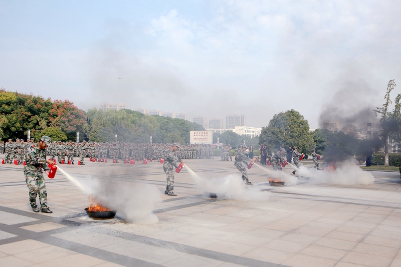 为推进消防安全教育与宣传工作,提高广大新生的消防安全意识和自防自救能力,9月25日上午,保卫处、学生工作处、各二级学院联合武进区消防救援大队在我校图文楼北广场,为参加军训的2019级新生开展了“消防进军训”活动。
