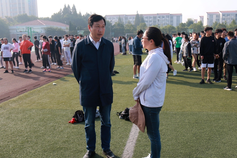 体育场上,我校学生发扬了勇敢顽强的拼搏精神,展现出了自己最好的运动水平,同学之间彼此加油、相互激励的动人场面,让每一个在场的师生感动不已。姚庆文在现场肯定了体测工作的开展情况,指出学生体质健康测试是对我校大学生体质状况的一次全面普查,是学生了解自身身体素质的重要途径,有利于促进学生体质健康全面发展。