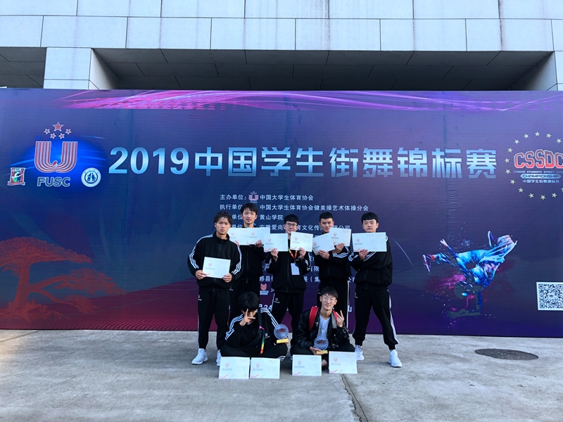 10月24-28日,2019年中国学生街舞锦标赛在安徽黄山学院举行。我校街舞队在指导教师周益、王静芳、毕先超的带领下,首次参加高职组原创齐舞比赛,荣获原创Breaking齐舞亚军和原创综合风格齐舞季军。