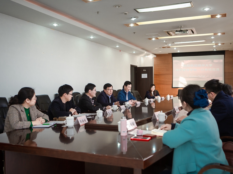 张吟对我校的热情接待表示感谢,他介绍了扬州大学海外教育学院留学生规模、留学生培养和国际化工作开展等情况。随后,双方就近年来国际化工作,尤其是留学生教育发展中取得的成绩和存在的问题及困难进行了交流分享,并在如何进一步加强留学生教育的内涵建设和提高来华留学生教育质量、扩大国际影响力等方面作了探讨。