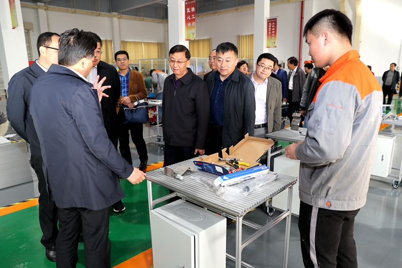 杨劲松对宁夏回族自治区教育厅职业教育考察团一行来访表示热烈欢迎,并陪同考察团参观了我校胡格教学模式试点班,调研了胡格教学模式改革项目。杨劲松向大家介绍了我校引进德国“胡格教学模式”的改革背景、人才培养方案、教学理念、教学模型、课程设置、师资建设等情况。随后,杨劲松陪同考察团参观了我校国家级示范性数控技术职业教育实训基地。
