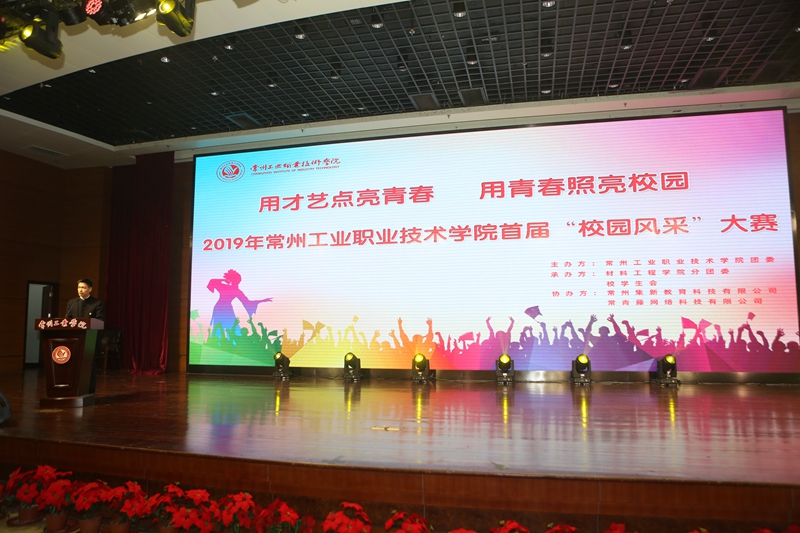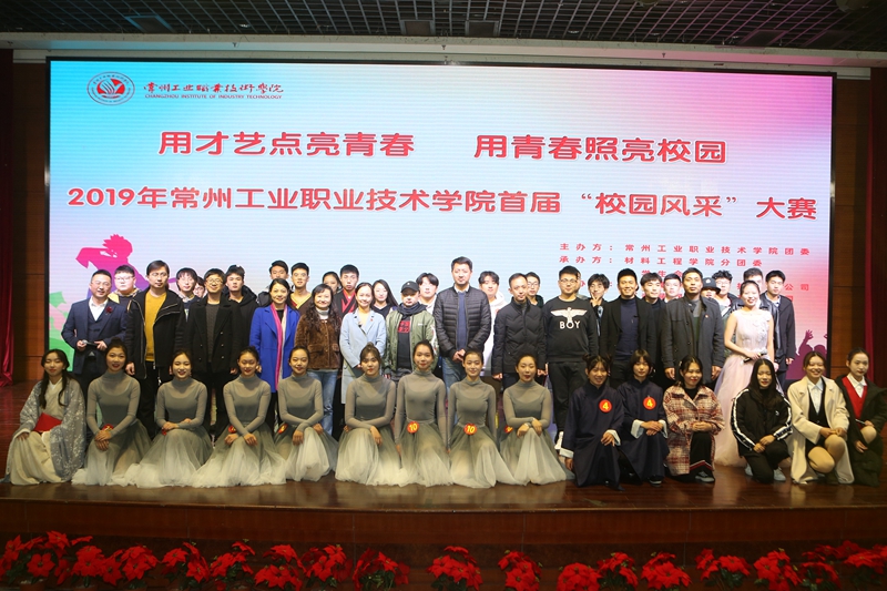 为激励和引导我校学生展现自我,强化校园文化熏陶,11月27日,“用才艺点亮青春,用青春照亮校园”2019年常州工业职业技术学院首届校园风采大赛总决赛在我校千人报告厅举行。本次大赛由校团委主办,材料工程学院分团委、校学生会承办,常州市舞蹈家协会副秘书长索亮、恐龙园艺术团团长易佳阳、常州机电职业技术学院公共艺术教育中心主任王伟应邀担任评委。我校副校长吴丽云、学生工作处处长柏铁山、团委书记嵇天培,以及各二级学院党总支副书记、分团委书记和千余名同学共同观看了比赛。