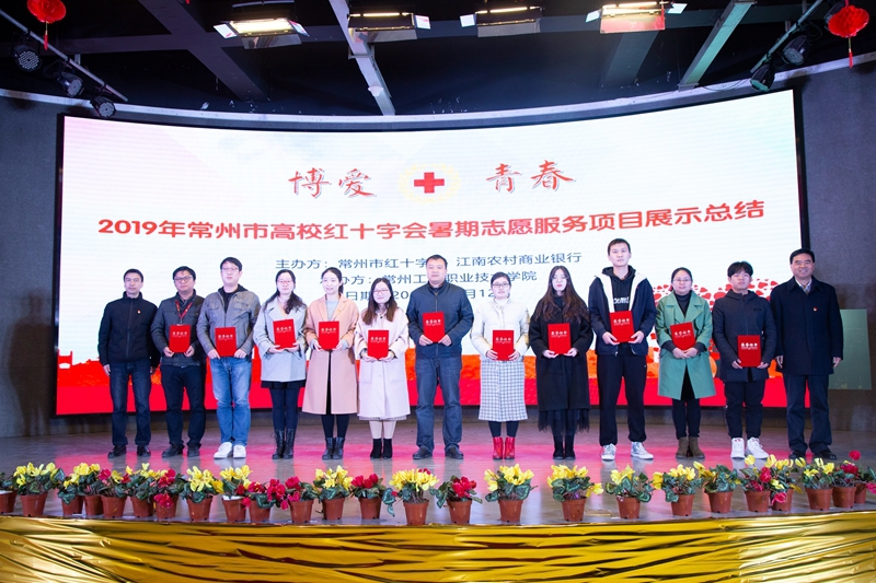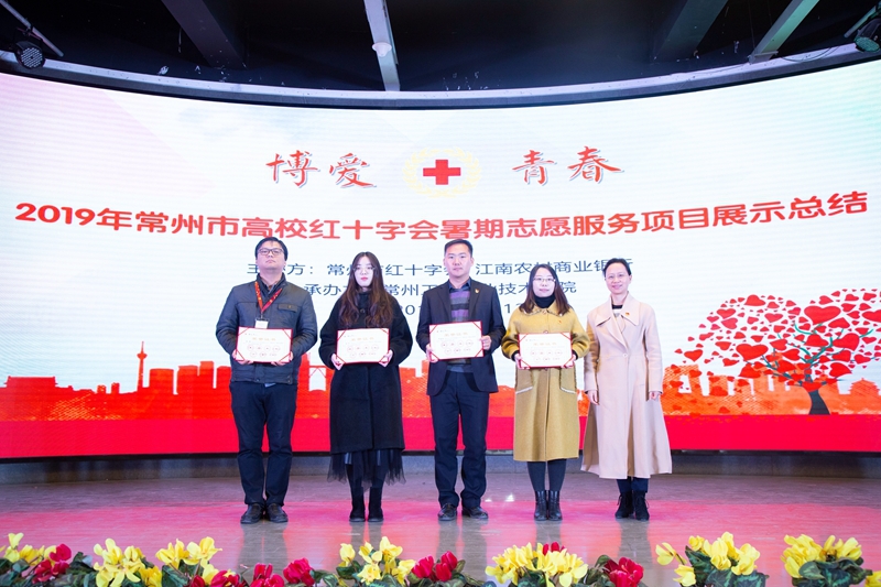 为了更好地弘扬“人道、博爱、奉献”的红十字志愿精神,大力推进高校红十字志愿服务工作,12月12日,由常州市红十字会主办、我校承办的2019年驻常高校“博爱青春”暑期志愿服务项目展示暨总结表彰大会在我校文体中心小剧场举行。我校艺术创意学院“用爱点亮折翼天使生命之光”获2019年全省高校红十字会“博爱青春”暑期志愿服务优秀项目、优秀指导教师和优秀大学生志愿者各1项,获2019年驻常高校“博爱青春”暑期志愿服务精品项目奖、优秀指导老师和优秀大学生志愿者各1项。学校副校长吴丽云、常州市红十字会常务副会长江华出席会议并讲话。各驻常高校分管领导、团委负责人、项目带队老师和学生志愿者近200人参加了本次活动。