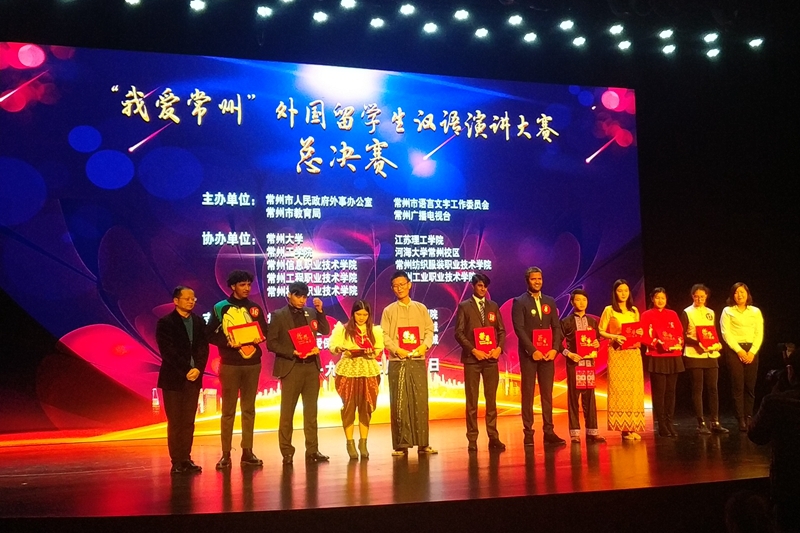 本次大赛由常州市人民政府外事办公室、常州市语言文字工作委员会、常州市教育局、常州广播电视台主办。比赛设有主题演讲和即兴问答两个环节。我校选手王忠亿和宋阳与在常其它高校的20位留学生同台竞技,他们在舞台上积极展示个人风采,或介绍常州的风土人情,或讲述在常留学经历,或慷慨激昂地讲述学成后回国建设家乡的梦想。他们精彩的演讲,赢得了评委们的一致肯定,最终获得三等奖的好成绩。