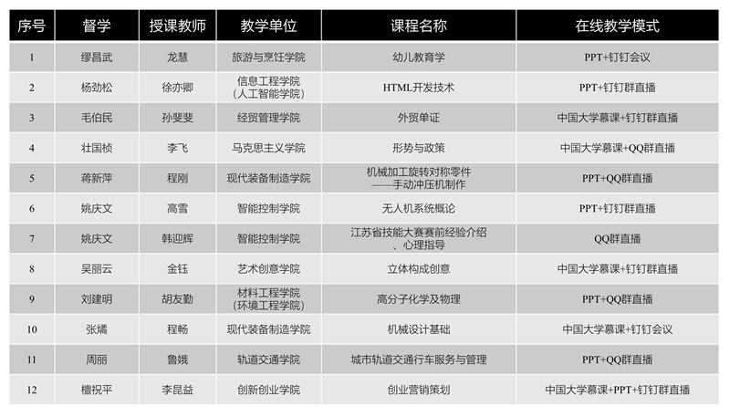 根据关于印发《常州工业职业技术学院2019-2020学年第二学期延期开学期间在线教学工作实施方案》的通知要求,2月17日开始,我校开启在线教学方式。第一阶段,2月17日—3月15日,开展录播课程学习。主要通过超星尔雅网络教学平台学习新型冠状病毒防疫知识、中华优秀传统文化、中国道路、军事理论等;第二阶段,3月2日开始,开展直播课程学习。主要内容为公共基础课、专业基础课和专业课。各教学单位按照规定的课表、时间、班级、学生(含留学生)进行线上教学。