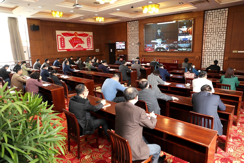 学校在图文信息楼1101会议室设置分会场,学校疫情防控工作领导小组全体成员参加视频会。