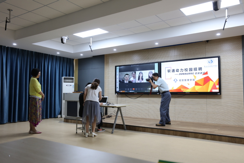张学军在经贸管理学院企业云招聘面试现场拍摄(吴佳伟/摄)
