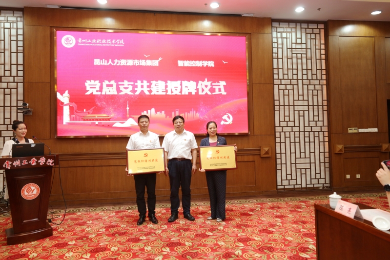 签约仪式上,缪昌武为共建党组织授牌,智能控制学院党总支与昆山人力资源市场集团有限公司党总支结对共建正式开启。