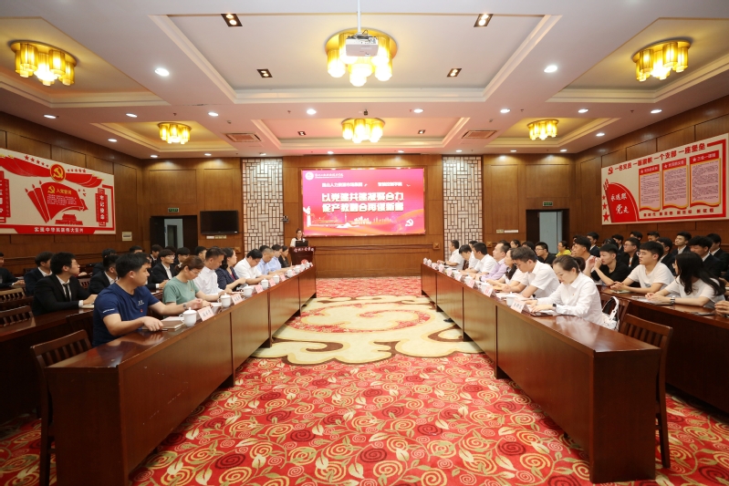 智能控制学院院长蒋正炎对智能控制学院的发展历程、特色成果、建军文化相关情况作了说明,重点介绍了智能控制学院实践基地、技能大赛、教学改革、校企合作等特色成果。希望在共同努力下,通过党建共建平台,发挥各自优势,促进产教融合,打造党建特色和精品,促进双方共同发展。