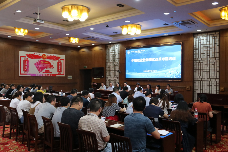 为进一步推进学校中德合作职业教学模式改革,提升复合型高素质技术技能人才培养质量,加强结构化教学团队的培养与建设,7月23日,学校组织召开中德合作职业教育教学模式改革项目专题培训。校长杨劲松出席会议并致辞,会议由教务处处长徐伟主持。